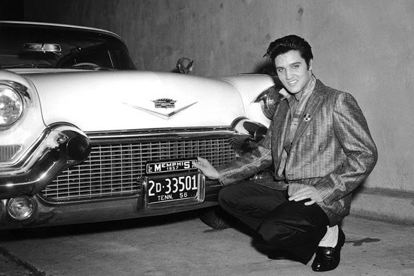 Elvis Presley with a 1957 model. (Source: https://www.macsmotorcitygarage.com)